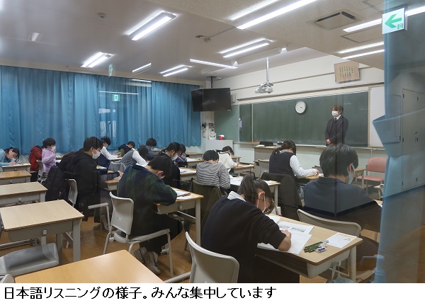 新4科特別総合を除く受験生たちがまず行っていたのは、日本語リスニングです。2分程度の音声問題を聴いて、出題に答える45分間。メモは取ってもOKですが、注意深く耳を傾け、話の意図を汲み取れるかが求められます。
