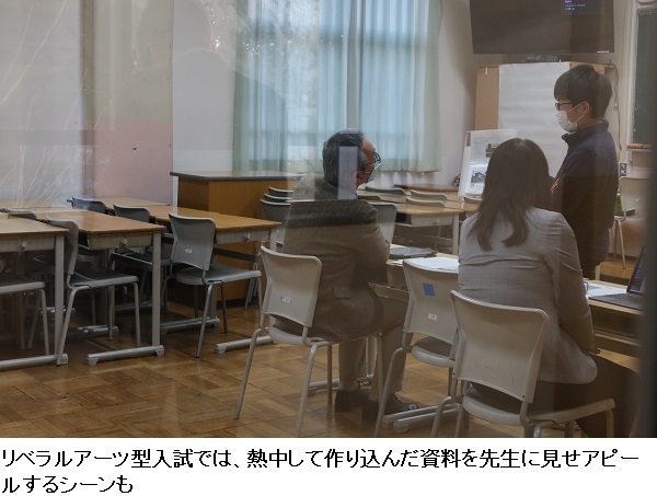 中には同じ入試区分の受験生同士が談笑している様子も見られ、ライバルというよりもそれぞれが自分の個性を大いに発揮し合う同志といった趣なのでしょう。