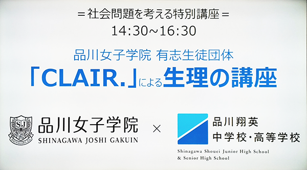 品川女子学院の有志生徒団体CLAIR.(クレア)が2023年4月22日(土)に品川翔英中学校・高等学校にて、共学校初の生理講座を開催しました。