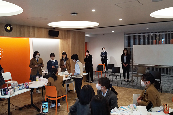 グループワーク中の吸水の説明について、ユニ・チャームの方からアドバイスをいただく場面もありました。テーブルを囲むみんなで「なるほど、そうなんだ!」と驚く中「知りませんでした!次回の講座から早速試してみます!!」と品川女子学院の生徒もいました。今後の講座の進化が楽しみです。