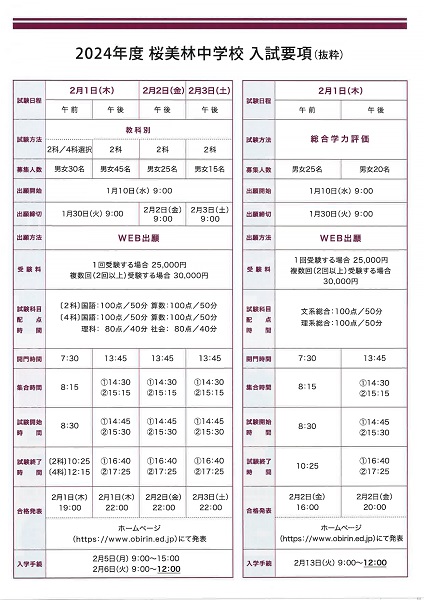 桜美林中学校が2024年入試の入試要項を公表しました。