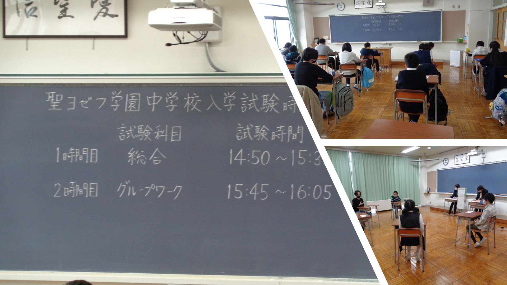 14時50分から15時35分までの45分間、「総合」の筆記テストが行われます。受験生は控室から筆記用具を持って試験会場の教室に移動します。「総合」の試験問題は、複数教科のこれまでの学習内容を含み、聖ヨゼフ学園の基本精神に基づくものを出題されます。特に同校が受験生に興味を持ってもらいたい自然科学的現象や社会科学的事象などを題材として取り上げていて、昨年の題材は「花火」でした。知識だけではなく、これまでの生活体験なども解答に向けての大切な材料となります。また、問題には解答のヒントがいくつもちりばめられ、解答しながら楽しく学ぶことができるように出題されます。適性検査と同様に文章や資料から情報を獲得し、自分の知識などと結び付けて思考するということで適性検査に似ている内容になっているので、川崎市立川崎高校附属中学校や横浜サイエンスフロンティア高校附属中学校を併願する受験生も毎年受験しているそうです。