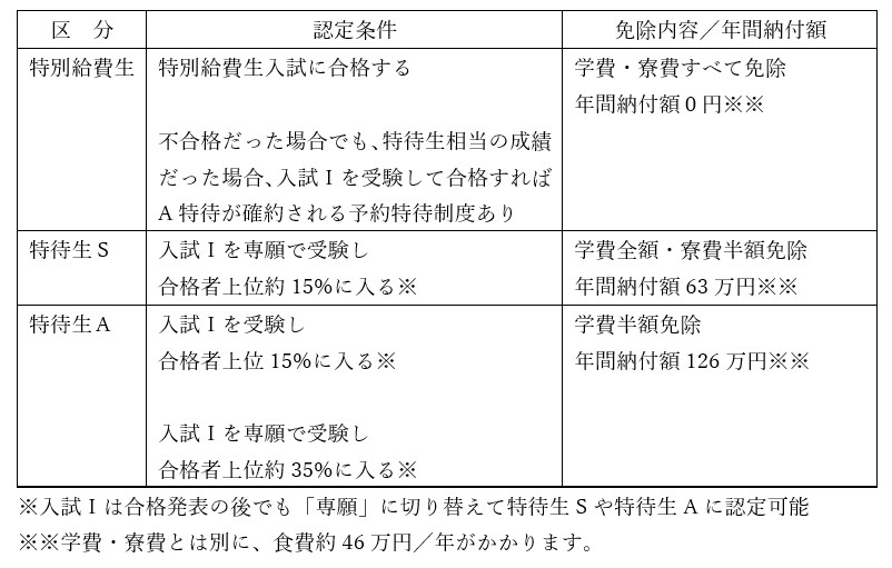 特別給費生だけではない!特待生制度がさらに充実!