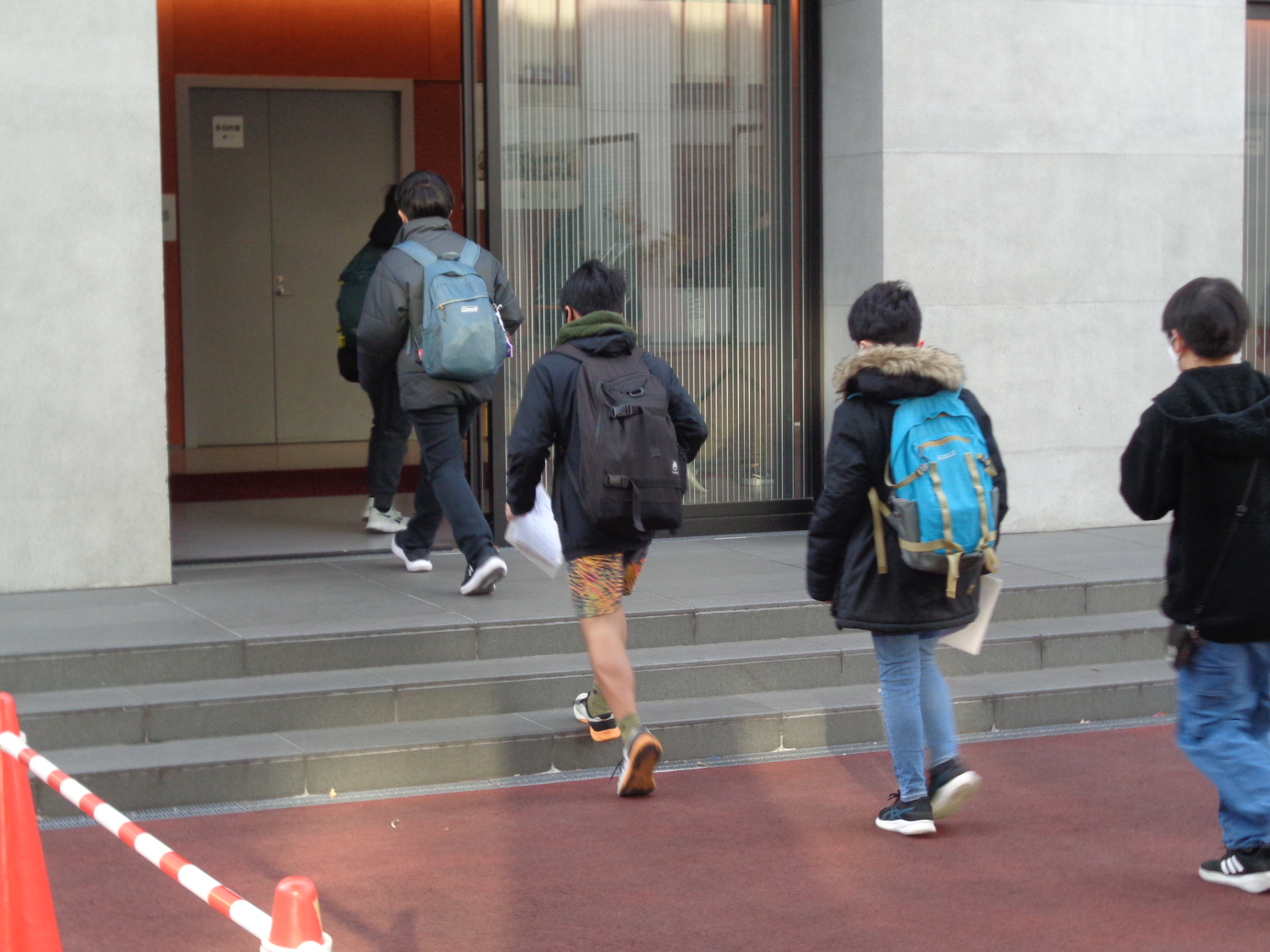そして午前8時、受験生を試験会場へ促すアナウンスが流れると、一斉に南校舎の試験会場へと向かいます。