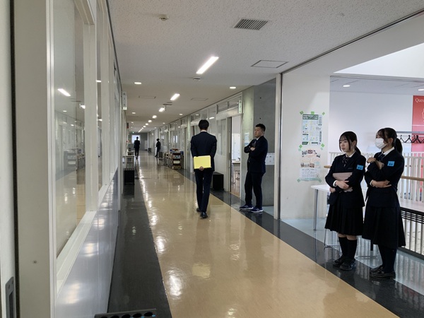 試験問題が回収されると、検査Ⅱのグループワークが行われる会場への誘導が始まりました。誘導を担当するのは在校生ですが、全員が、このAL型入試で入学した生徒たちだそうです。中学1年生もいたそうですが、1年前に同じ入試を受けた先輩として、一生懸命役割を果たしている姿に成長を感じました。