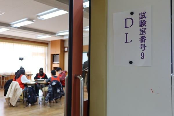 2月5日の入試当日の集合時間は8時30分。9時から試験①が行われる、ラーニングコモンズと同じフロアの教室で受験生たちは待機します。