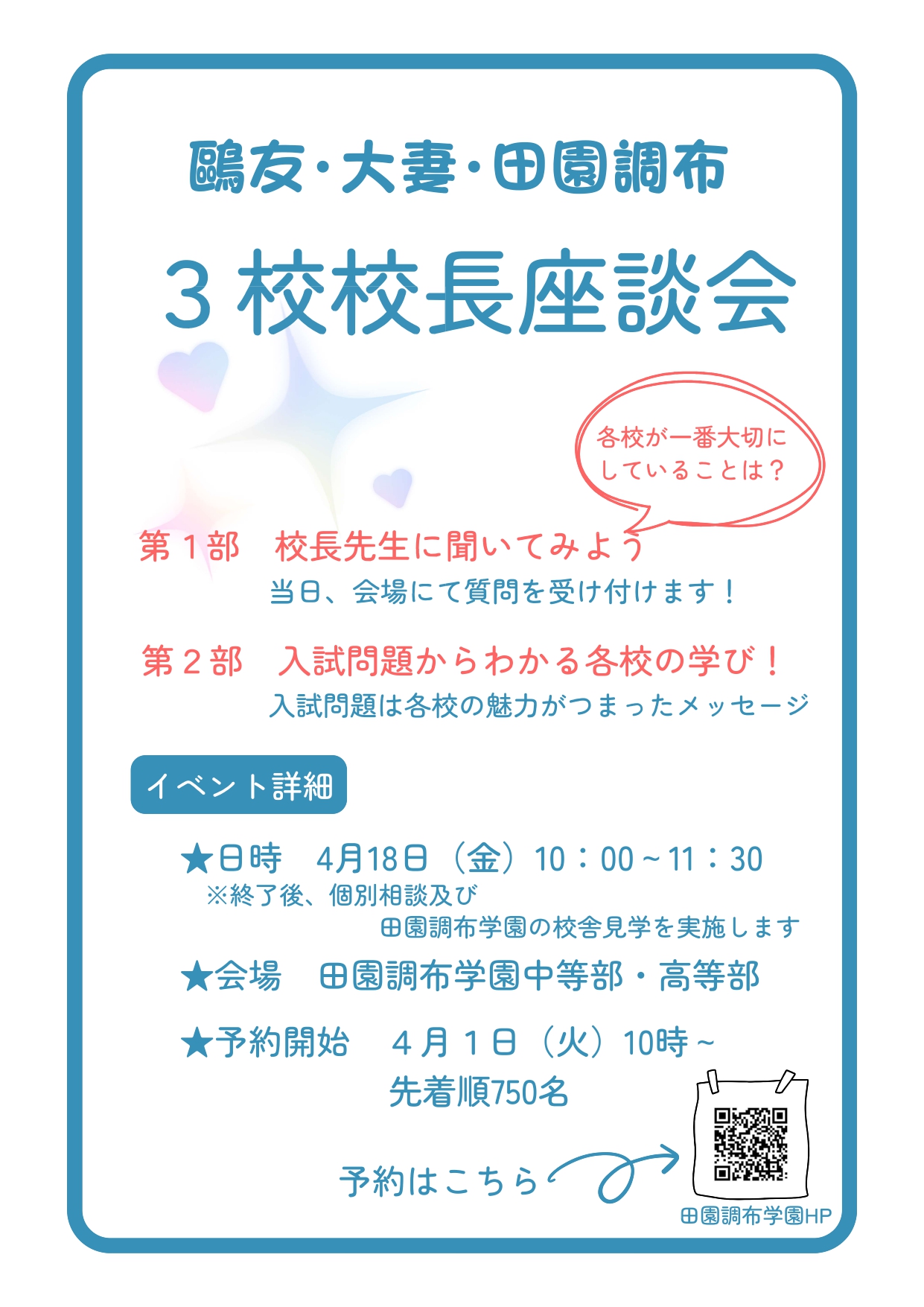 鷗友・大妻・田園調布!三校校長座談会が4/18に開催!