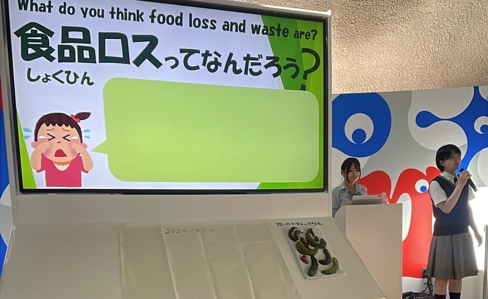 (写真)万博でαゼミの成果をプレゼンテーション