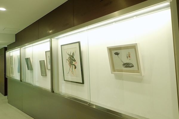 生徒の感性を刺激し思考訓練のできる空間、ヴンダーカンマーを作りたい、というのが青田泰明校長の念願でした。現在、モダンアートが好きな青田校長のコレクションや学校関係者から寄贈された作品が展示されています。特定の作家や主義の作品を収集しているのでもなければ、油絵とか版画といった表現方法を限定しているのでもありません。誤解を恐れずに言えば、脈絡がない、といった風情。