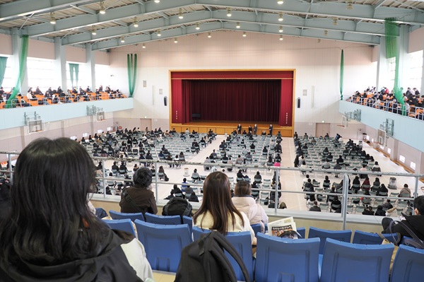 受験番号順に並ばせるのではなく、到着した順に空いている教室へ案内する「先着順」の誘導を採用しています。これにより入り口の混雑を防ぎ、受験生は余計な緊張を強いられることなく、スムーズに自分の席へと着くことができます 。