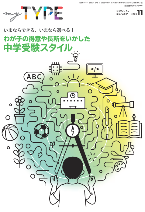 『MyTYPE』は、首都圏模試センターが発行する中学入試情報誌で、最新の入試動向や学校情報をわかりやすく紹介しています。偏差値データや合格者分析に加え、受験生の「タイプ」に応じた学校選びの視点が特徴です。学力だけでなく個性や学び方に合った進路を考えるヒントが得られ、保護者にとっても教育方針や学校生活を知る貴重な情報源となります。受験を通じて子どもの未来を見つめるきっかけとなる一冊です。今回は、2025年11月24日発行のmy TYPE第15号に掲載しました記事をご紹介します。