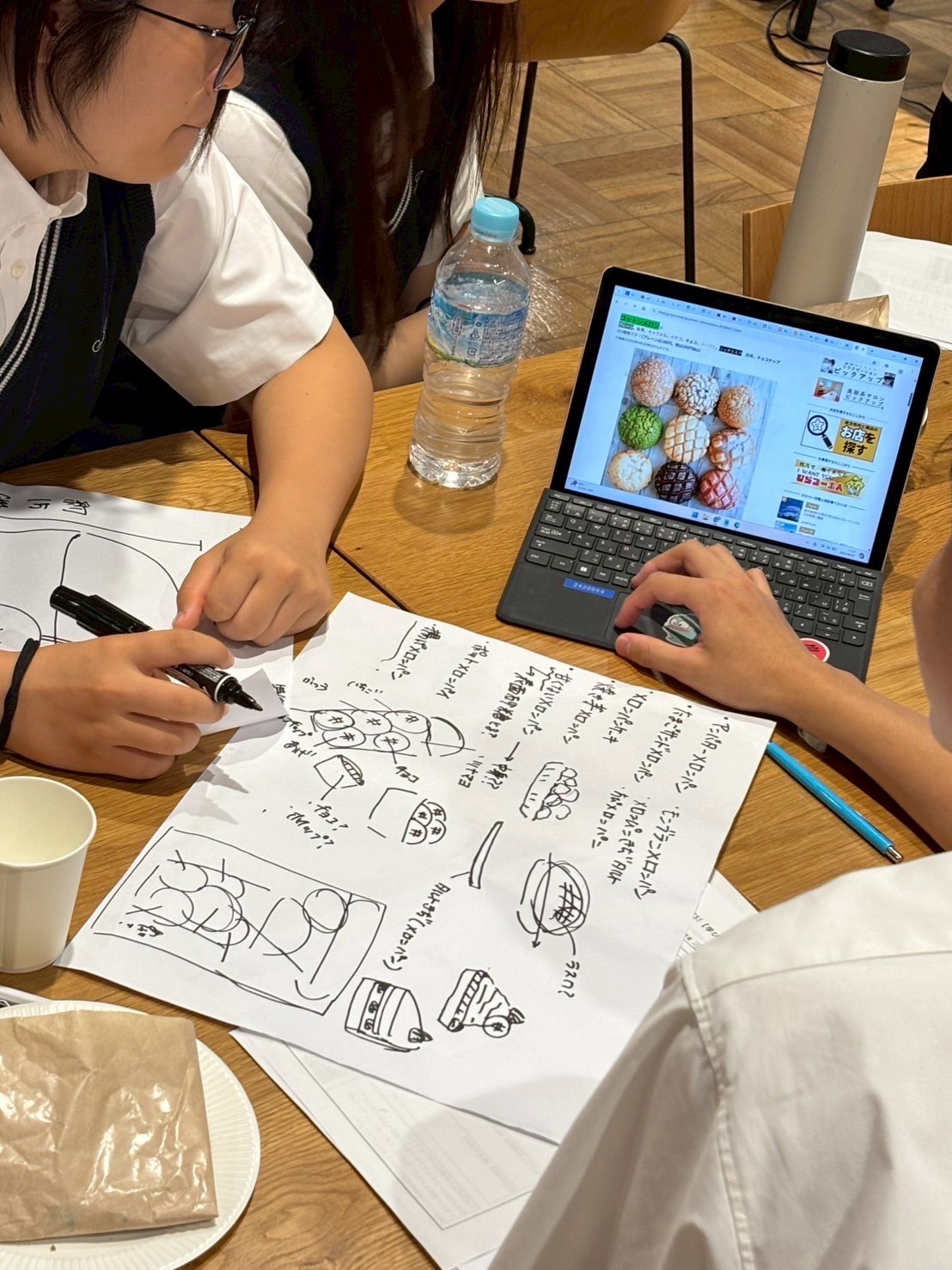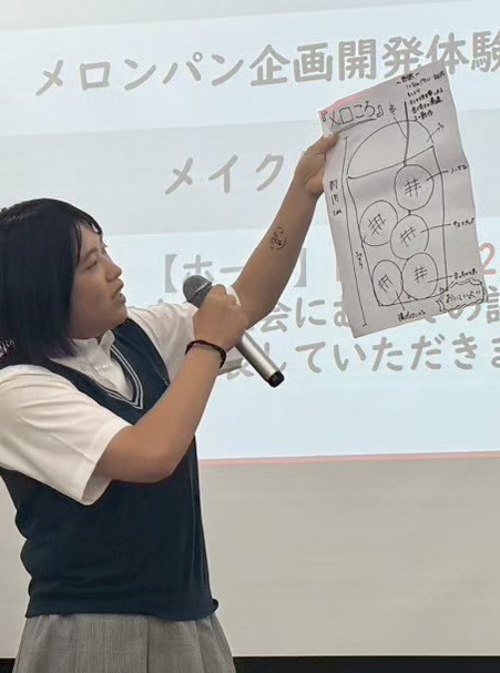 「横浜めろんど」オーナーの東條英明さんによるメロンパン企画ワークショップは大盛況!チームで楽しく企画アイデアを出し合い、SNS戦略も考案。商品化の夢にワクワクする姿が印象的でした。