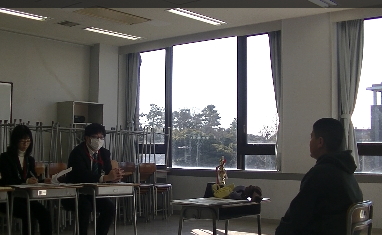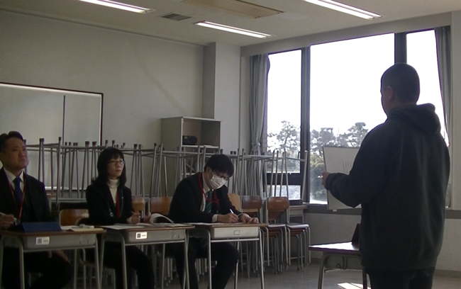 受験生たちは、プレゼンテーションが始まるまで控え教室に案内されます。控室で15分間程度、最終確認を行い、試験会場へ向かいます。