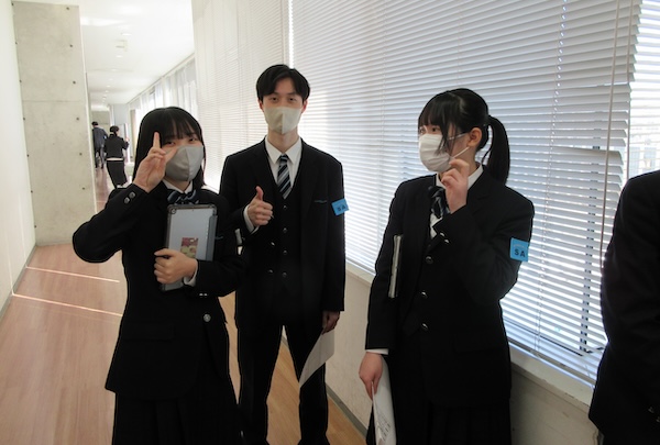9時35分、在校生の誘導で受験生たちは6つの検査室に分かれていきます。