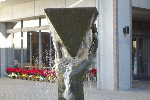 なるほど、手のひらが支える三角錐の入れ物から湧き出る泉は、純粋で形が定まらず無限に溢れていますから、聖学院が大切にしている何ものかを象徴するオブジェだと納得がいきます。