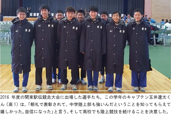 多感な中学生に伴走し、高校へつないでくれる指導者がいることも、東京の私学が長距離走で活躍する理由の一つ。しっかりとした活動をなくして上位争いはできない駅伝を入口に、学校を見てみるのもおもしろいかもしれません。