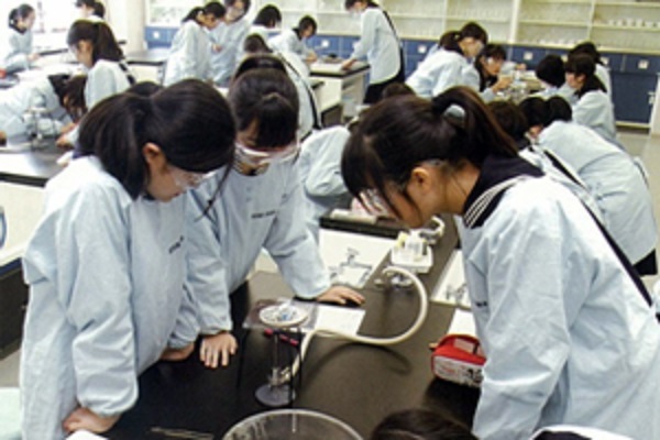 大妻多摩では、より多くの実験や観察を生徒に実際に体験させることにこだわっています。体験して実感することが、理解を深めるだけでなく、更なる探究心に火をつけると考えるからです。生物分野では、ゾウリムシやヒドラを始めとする生物室で飼っている様々な生物が実験で登場することもありますし、また、大妻多摩の豊かな自然環境を題材とした授業も積極的に行っています。春にはツクシを摘んで顕微鏡で胞子の観察をしたり、秋には周辺を歩いて秋の野草を観察するなど、四季折々の自然を生かした授業を展開したいと考えています。また、顕微鏡は一人一台ずつ用意されているため、実験準備や操作方法は一人ひとりが責任をもって学ぶことが出来ます。共学校では男子生徒が率先して実験を行う場合が多いとも聞きますが、本校では全ての作業を女子生徒のみで行うため、実験を通して生徒達の自主性とリーダーシップも養われます。