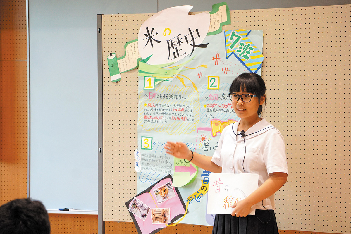 そして9月の明実祭で中間発表を行い、3月にはパワーポイントを駆使して最終発表を行います。論文は全員分が冊子にまとめられますが、生徒たちはその活動を通して、論理的思考力や情報編集能力、表現力やコミュニケーション能力といった教科を横断した力を養うのです。