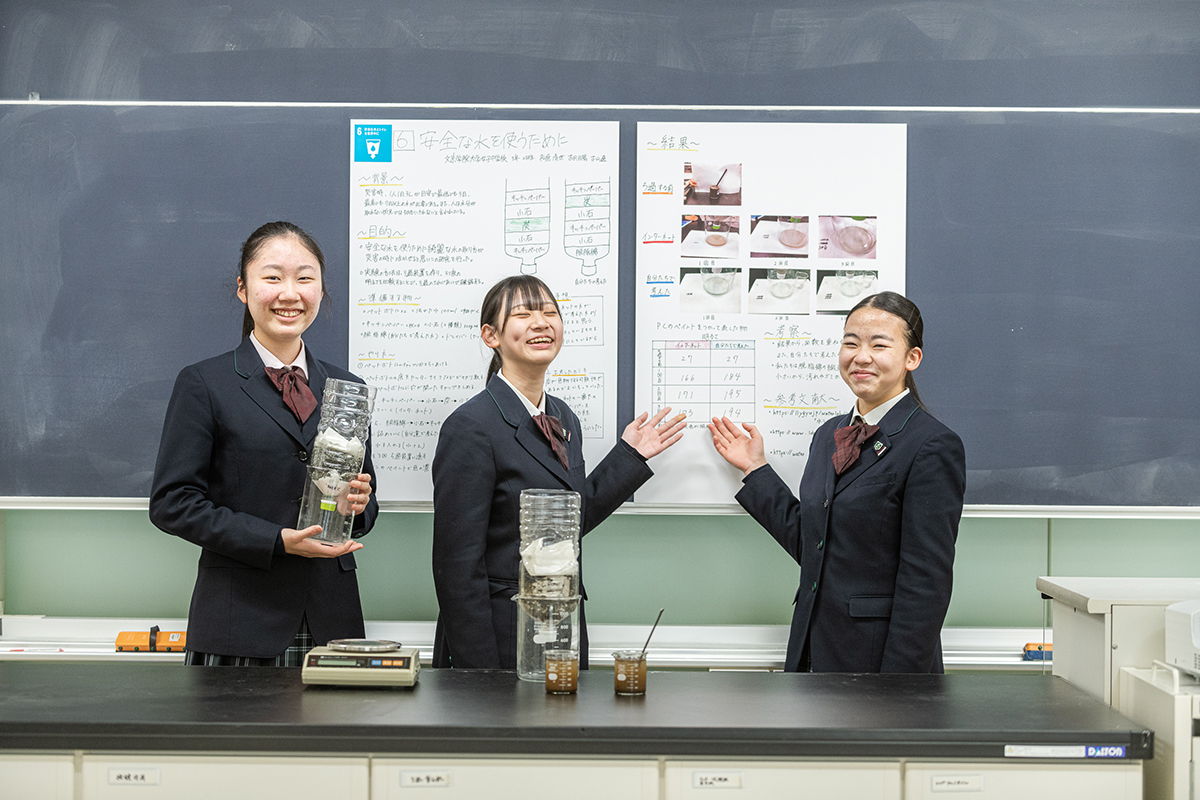 2012年よりタイの「Princess Chulabhorn Science high school Phetchaburi」との科学交流を実施しています。理数キャリアコースに在籍する高校2年生を中心に行われ、研究成果は英文で作成し、英語で発表・質疑応答まで行います。そしてその研究内容をブラッシュアップして、さまざまな大会やコンクールにも積極的に取り組んでいます。2023年5月には、アメリカで開催された世界最大級の高校生向け科学コンテストである「Regeneron ISEF2023(国際学生科学技術フェア)」に2名の生徒が出場。67の国と地域から集まった約1600名の高校生と競い合い、「材料科学部門」で優秀賞4等を受賞しました。