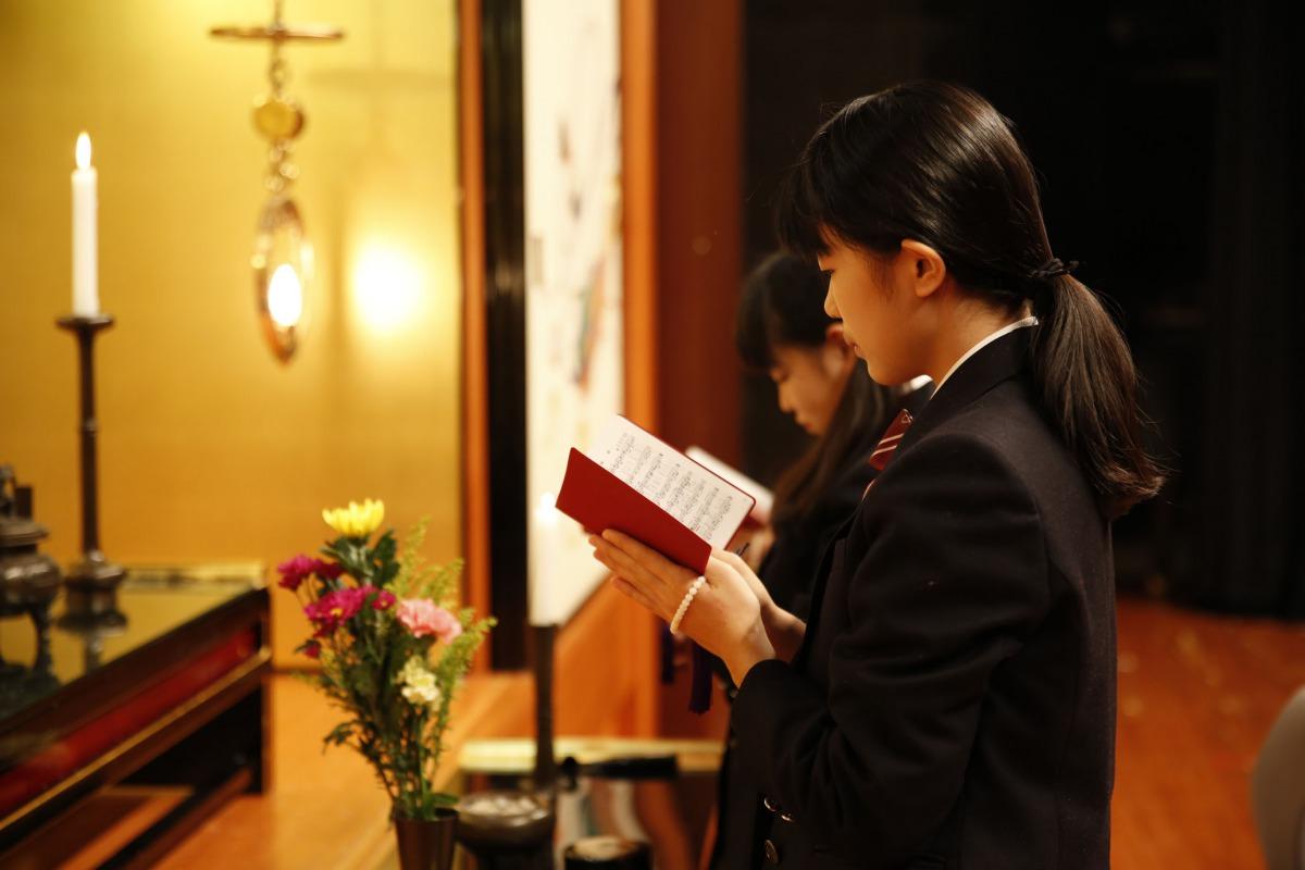 本校の朝は授業前に行う『朝拝』からスタートします。また、毎時間の授業が始まる前に『黙念』を行います。これは心を落ち着かせて集中力を高めるためです。そして週に1時間は『生きることの意味』を自分に問うために宗教の授業を行っています。単に宗教史や宗教論を学ぶのではなく『いかに生きるか』を考える契機にしてほしいと思っています。そのほかにも宗教儀式の際に、様々な方を招いて講話を聴く機会があります。ただ聴くだけで終わらせるのではなく、メモを取りレポートを作成し提出します。これら一つ一つの経験の積み重ねが生徒の糧となり、それぞれの将来へとつながると考えています」