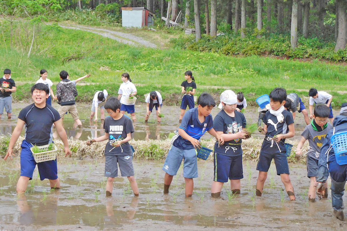 中1の「スプリングキャンプ」は、新潟県の民家で民泊を実施。田植えを体験することで主食である米を知り、昔ながらの日本の生活を目の当たりにします。