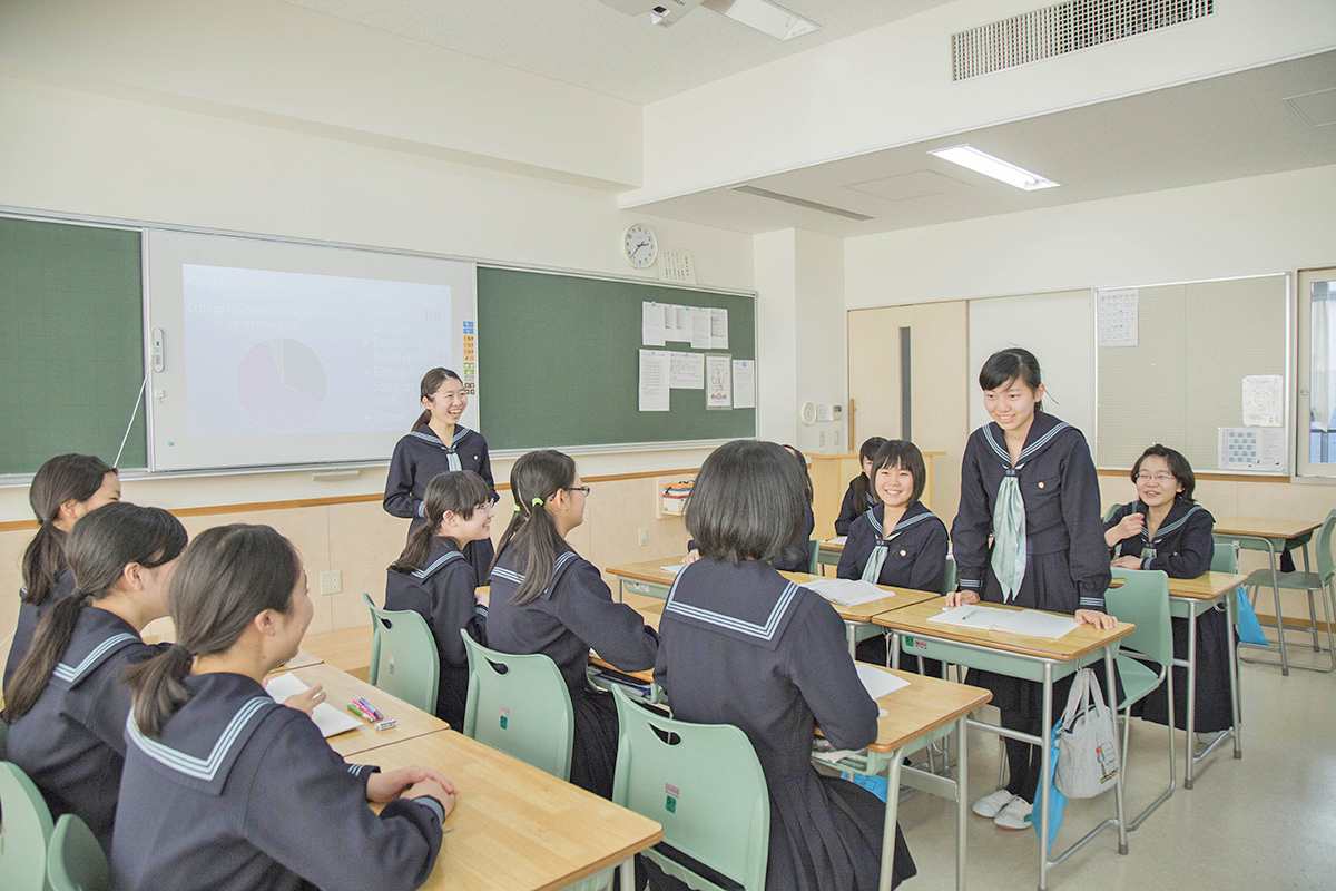 もちろん英語には力を入れていますが、中高合わせて27名の英語の先生がいるうち10名がネイティブスピーカーで、週に6時間ある英語の授業は英語での課題研究、発表、ディスカッションなどを中心として実施されています。