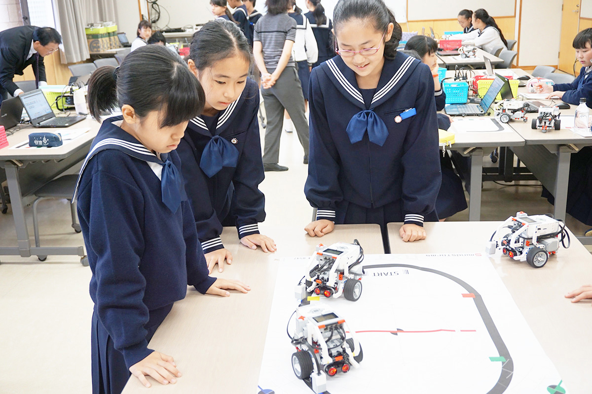 そうした動きを見据えて、同校では昨年の4月から、いち早くプログラミング教育をスタートさせました。プログラミングの授業を担当するのは、川原田康文先生です。川原田先生は、ロボティクス科を教科化した立命館小学校(京都)で、7年間教えてきたプログラミング教育の草分け的な存在。昨年度から相模女子大学で小学部の副校長に就任し、小学部と中学部のプログラミング教育を担当しています。