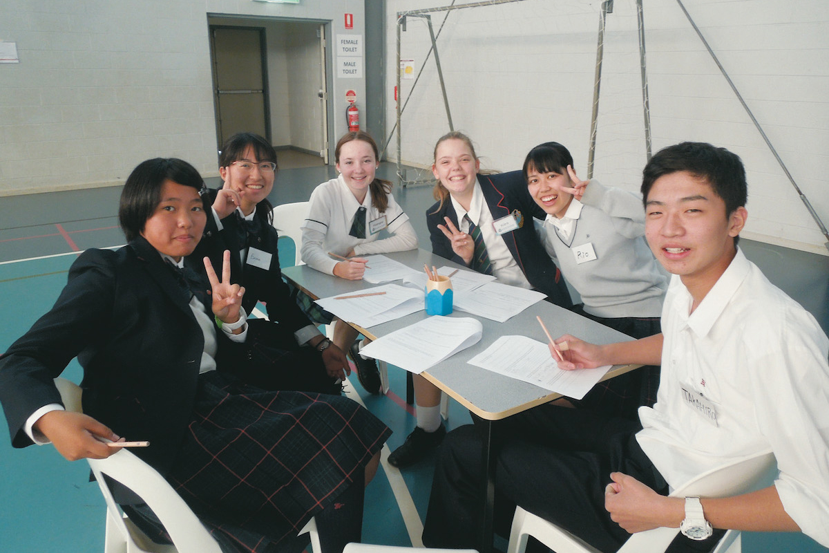 さらにネイティブと日本人の教員による少人数制英会話授業を行い、英語に興味をもち、学習を深めるためのイベント=『場』を設定しています。全学年が行う年1回のスピーチコンテストや、高1・高2対象のオーストラリアホームステイ研修のほか、中3対象の異文化交流は年に2回開催。あえて英語を母語としない留学生と交流します。初回は京都・奈良への修学旅行体験を議題とし、日本文化をどう伝えるかしっかり用意して臨みます。2回目は即興で、その場で出た話題に合わせて会話します。