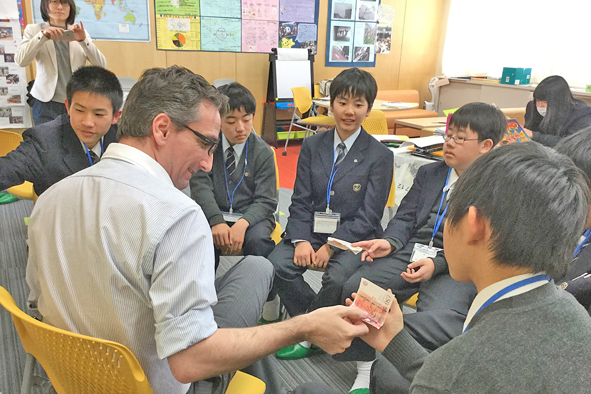 島田副校長:「世界の教室」では、ガイドをつけて日本語で説明してもらうこともできますが、できれば英語で学ぶ体験をさせたいという考えがあり、あえて現地スタッフの方に英語で説明してもらいます。
