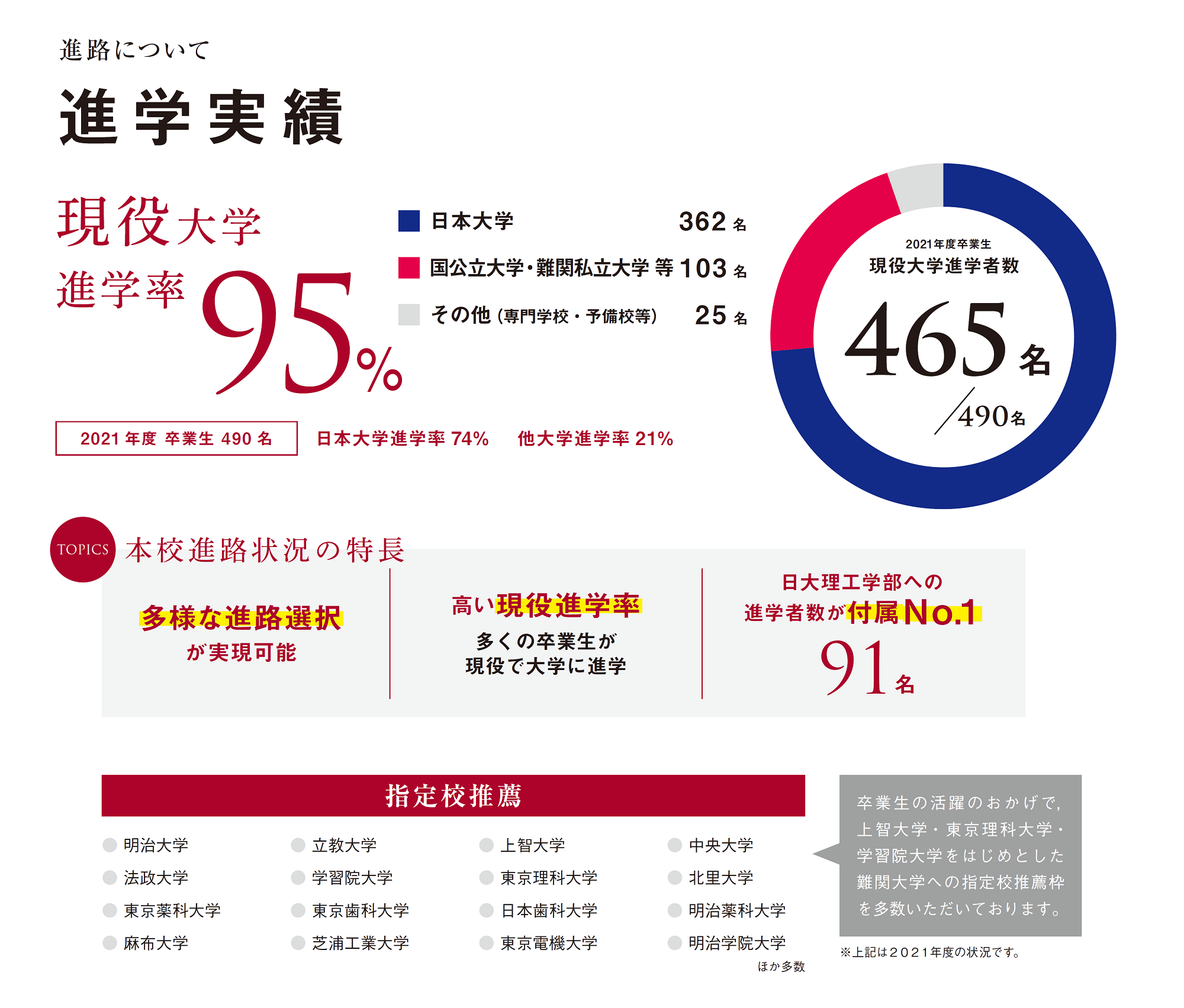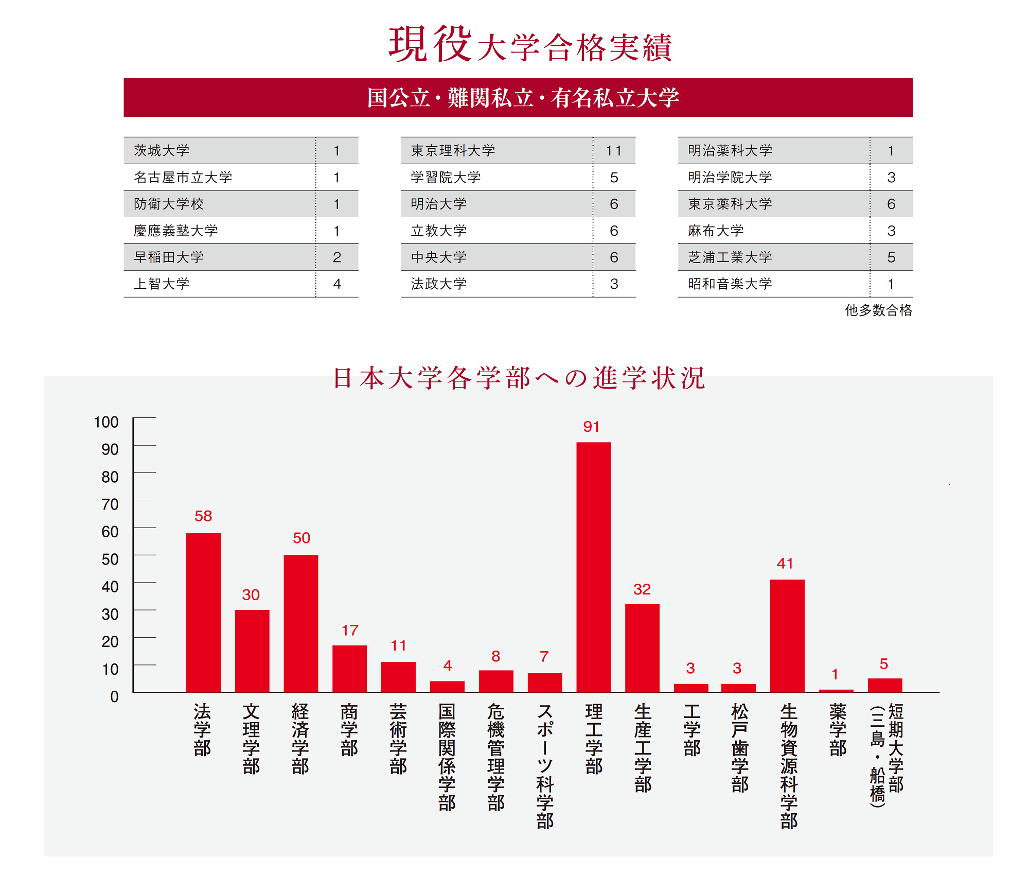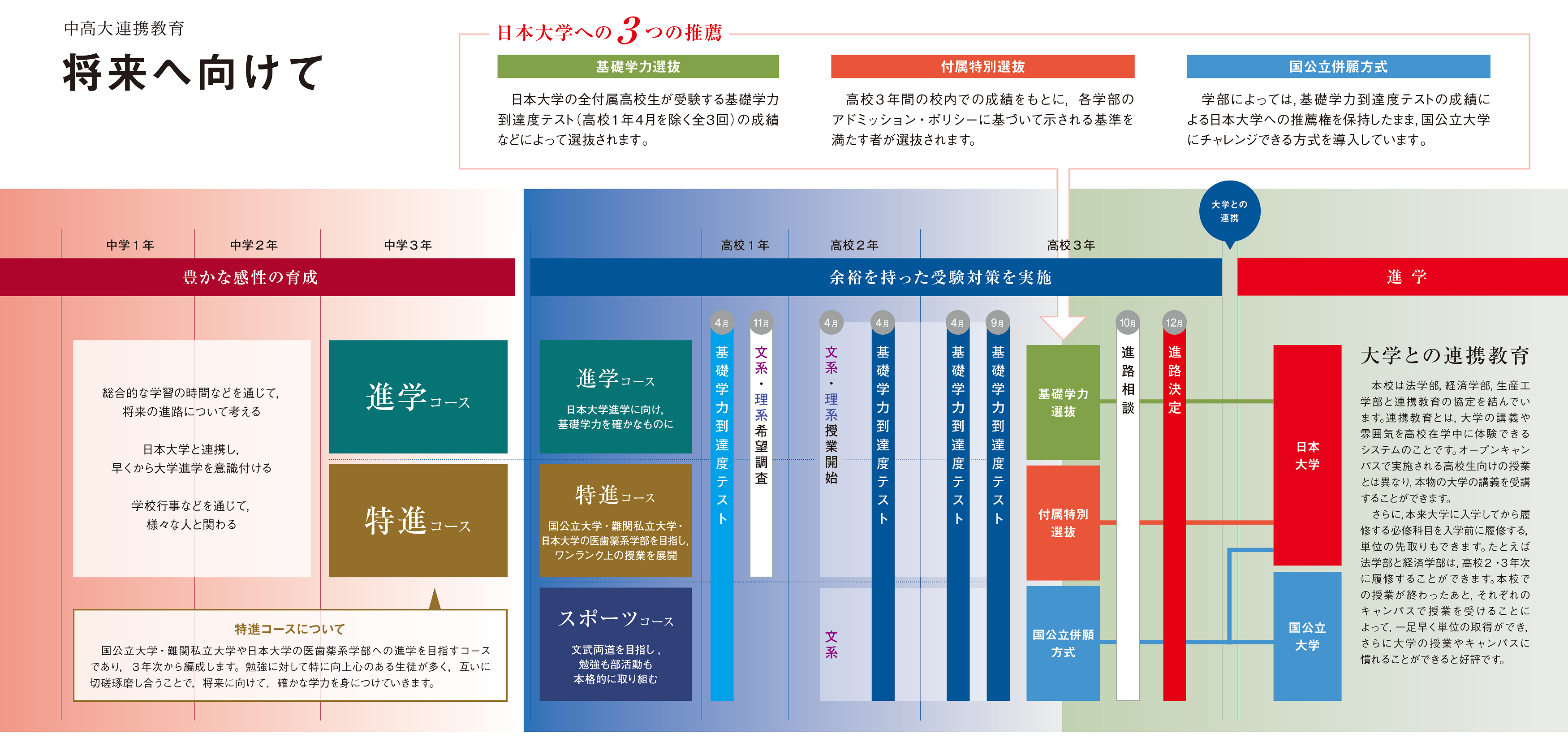 確かに、日本大学の付属校であれば、希望の進路によって、日本大学のなかで選べない学部・学科はほとんどありません。