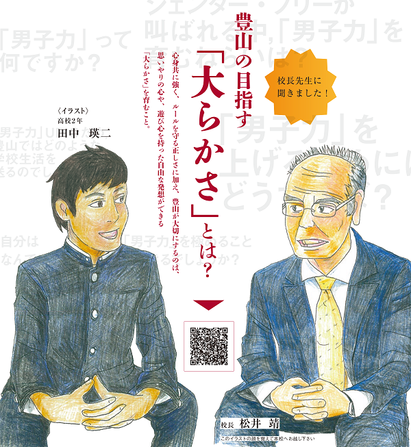 男子の教育というと、力強いとか逞しいとか、泥臭い、汗臭いという固定概念もあるかもしれませんが、それを一回打ち砕いて、新たな男子らしさ、多様性、大らかさを本校の特色として伝えていければと考えています」と松井先生は、新たな男子校の魅力を伝えていきたいと考えています。