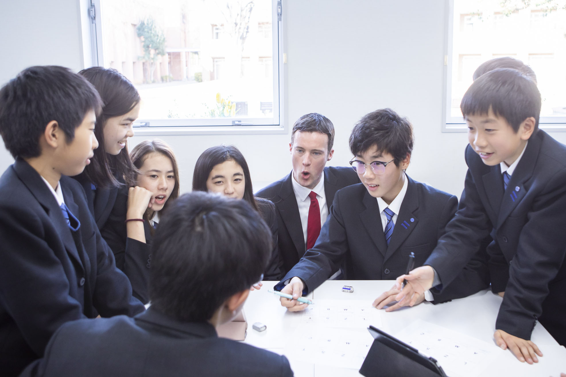 もっともエキサイティングな学校として注目を集め続ける三田国際学園。先生、生徒を問わずネイティブスピーカーの割合が圧倒的に高く、日常的に英語が飛び交っています。