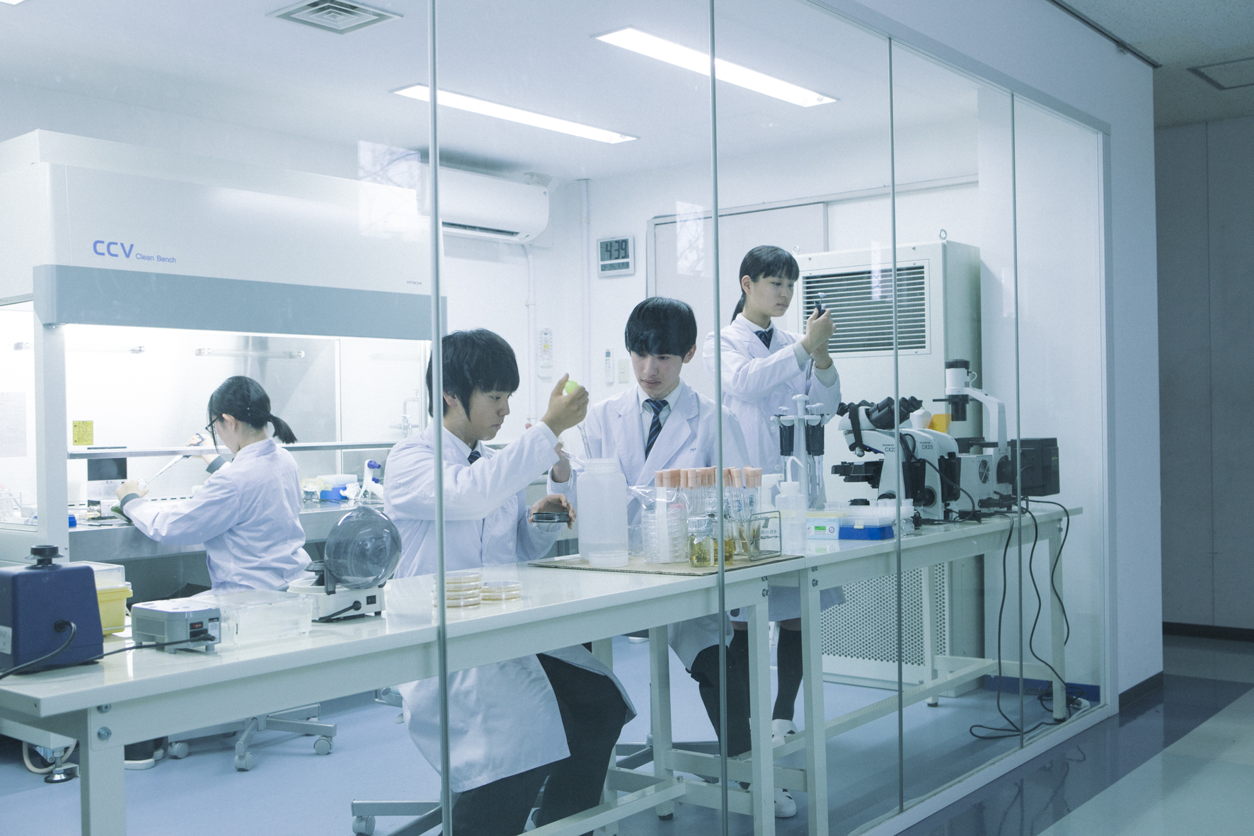 生徒や先生とインスパイアし合える環境が同校最大の魅力であり、日常的に研究活動に取り組むメディカルサイエンステクノロジーコース(以下、MSTC)にかぎらず、「基礎ゼミナール」やクラブ活動、あるいは有志団体など、さまざまな場で活動する生徒が次々と大会やコンテストに挑戦し、賞に輝いています。2020年度はeスポーツの全国大会で頂点に立ちました。