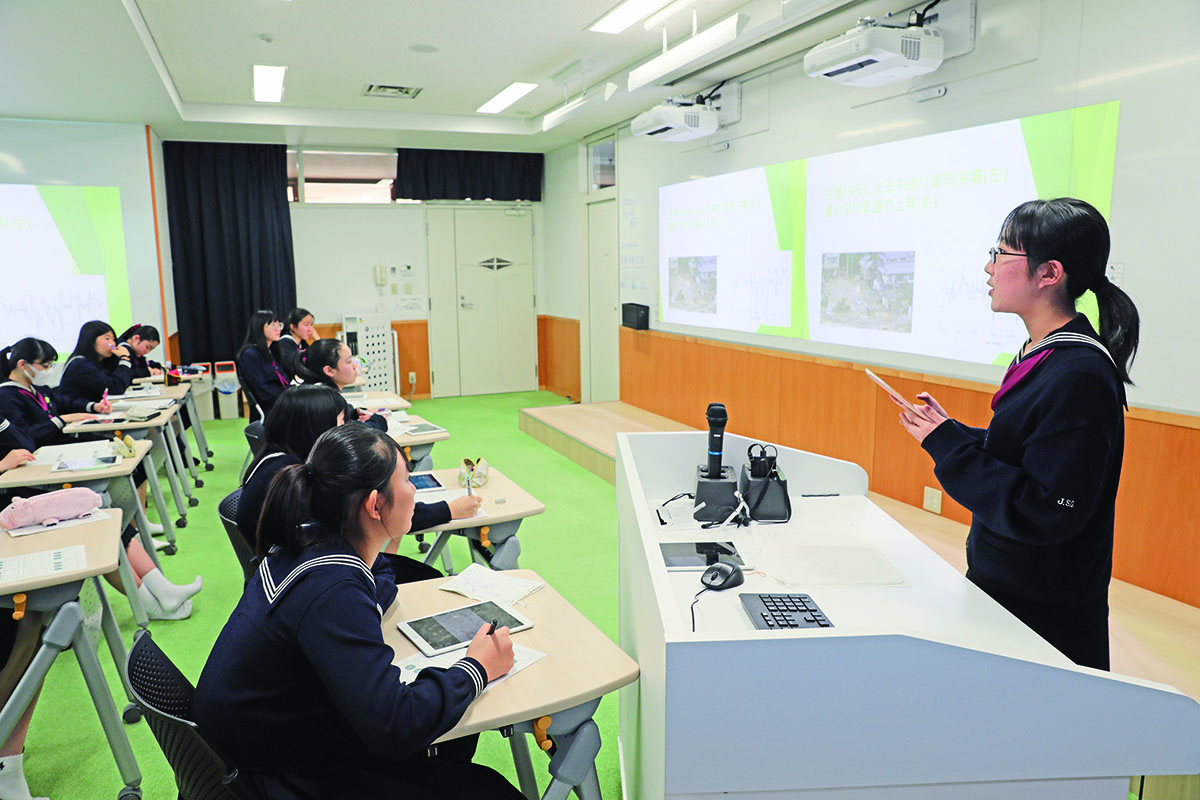 多様な価値観が交錯する不確実な時代だからこそ、「社会に貢献できる女性」を育成する意味の重さが増していますが、同校では今、新たな取り組みとして中学3年間の「総合学習」の時間で「探究学習」に取り組んでいます。