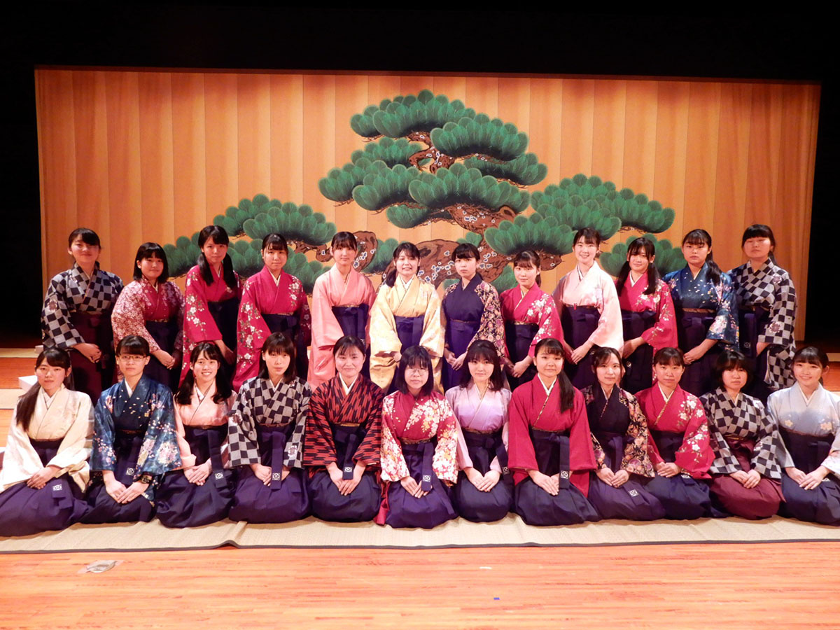 高校では「マナー講座」があり、高2時には「茶道・華道・装道」を全員が学ぶ「和躾(なごみ)の日」に「和」の作法を教わります。装道とは、着物の装い文化を極めること。同校では、「浴衣」を帯結びまでを含めて一人で綺麗に着られることを目標にしています。