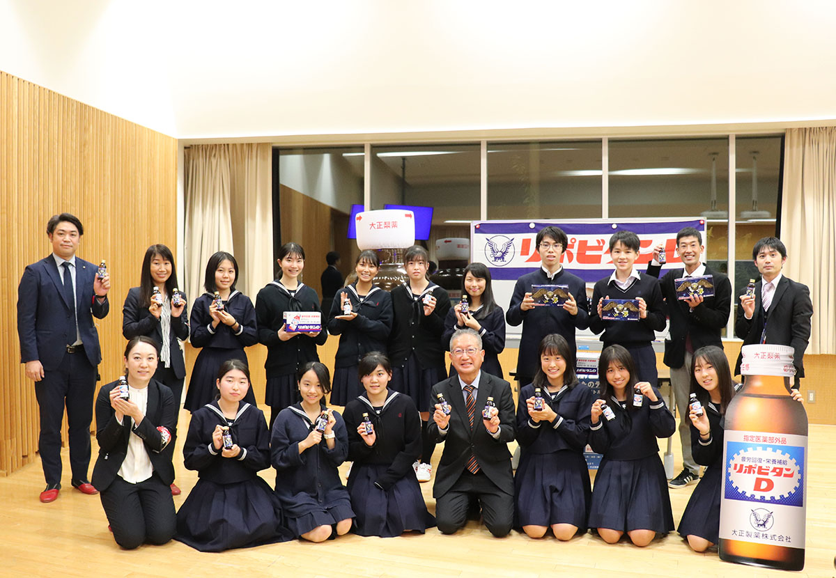 小寺さん:4つの班に分かれて「高校生に受け入れられる商品コンセプトやデザインに変更したら販売拡大できるのか」という仮説を立て、どのようなデザインが好感を得られるのかを話し合い、デザイン案を作成しました。私たちは「部活動や勉強を頑張る高校生を力強く応援しよう」というコンセプトで、大正製薬のワシを図案化し、キャッチコピーを入れることにしました。そしてプレゼンを行い、互いに評価しあって、最終的に私たちの案が選ばれましたが、市場調査を受けて、ワシの表情をもう少し柔らかくしようなど、改善を重ね商品化となりました。