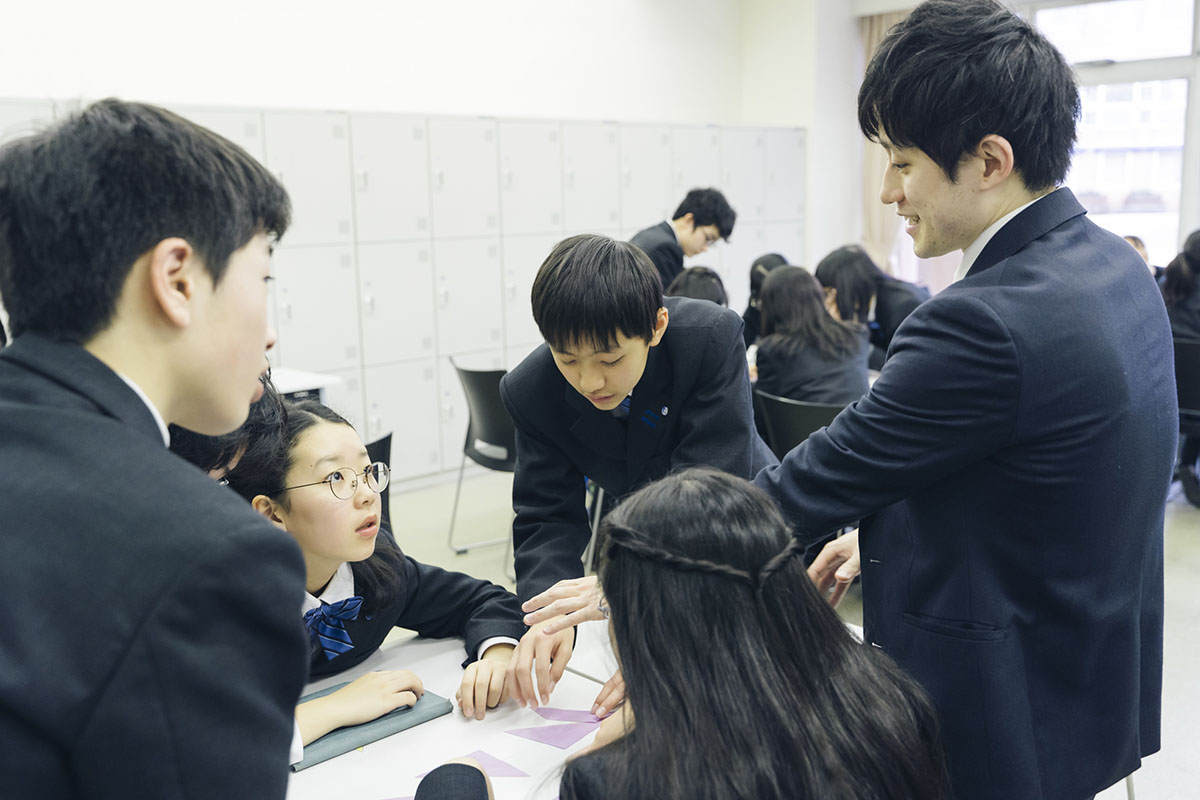 今井先生:進学実績の背景には「THINK&ACT」があります。本校では習得した知識を活用して考える力「THINK」と、考えたことを行動に移す力「ACT」を、すべての学びと活動において重視しています。開校当初から、教員が投げかけるトリガークエスチョンに対して、疑問→仮説→検証→結果→発表→新たな問い、というサイクルを繰り返す「相互通行型授業」は今も基本として大切にしていますが、現在はそこから一歩進み、生徒同士で積極的に学びの活動を広げています。教員も教員研修の中で教科や学年の垣根を越えて協働し、生徒の力を最大限に伸ばすための学びの追究にクリエイティビティを発揮してくれています。