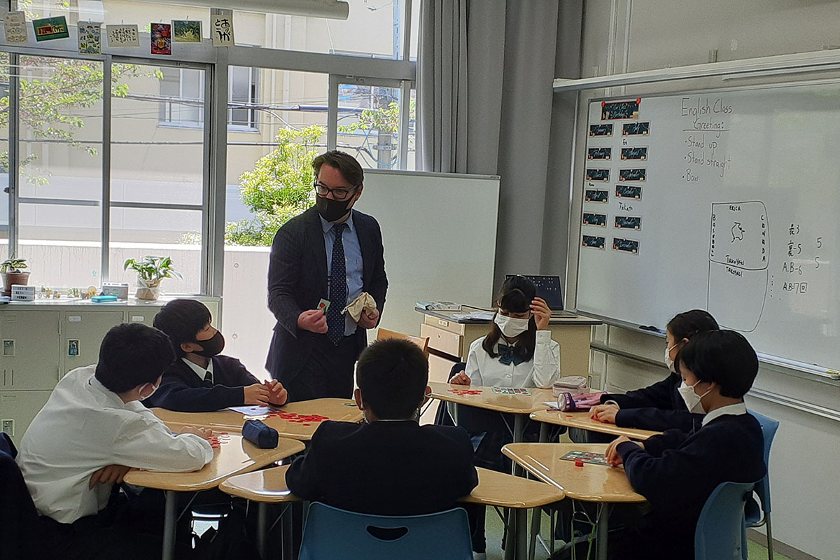 その流れを受け、2022年度から中学でも「リベラルアーツ&サイエンス(LA&S)クラス」を設置し、今年度は中1生7名でスタートを切りました。授業の時間割は一般クラスと同じですが、ネイティブ教員が担任、岩内先生が副担任を務めており、HRなどは基本的に英語で行います。また、ネイティブ教員は合計8人おり、数学と理科、社会はネイティブ教員と日本人教員のチームティーチングで行っています。