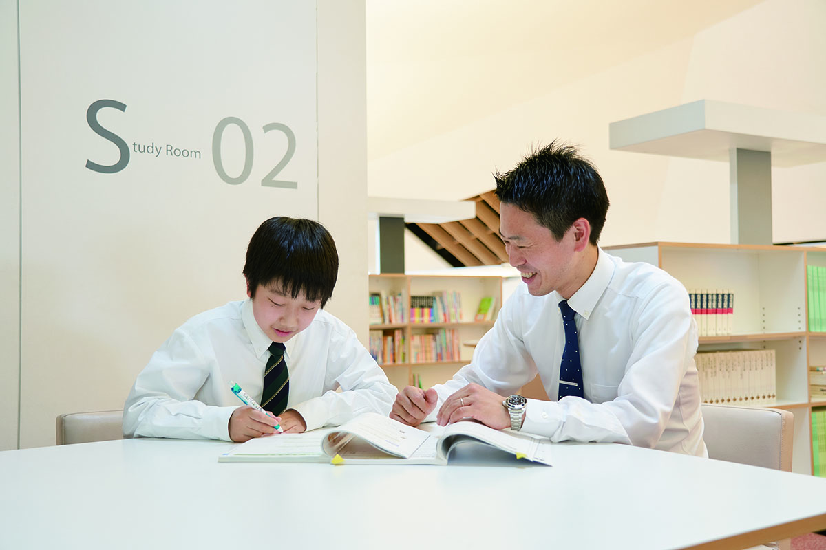 難度の高いカリキュラムにも前向きに取り組む、意欲が高い中1生たちを、先生は温かい目で見守りながらサポートしています。「我々のモットーは"Enjoy School Life!"。 楽しく過ごすことで主体性が生まれるので、先生が一方的に話す授業ではなく、生徒が楽しく参加できる授業やプログラムこだわっています」と岩内先生は力をこめます。LA&Sクラスの生徒たちのこれからの成長と進路には、大きな期待ができそうです。