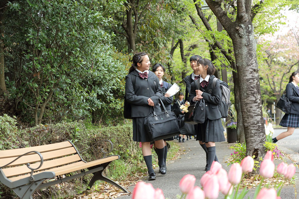 そのため、生徒に志望動機を聞くと「自然環境」という答えも上位に入ってきます。女子校が共学化するとしばらくは女子の比率が高いのが一般的ですが、同校の中学の男女比は男子7:女子3。文化祭などで同校を訪れた男子受験生がこの環境にほれ込んで、受験を決めるケースも多いそうです。「おおいかぶさるような緑に囲まれ、車道からグラウンドは見えないから、校地に入らないと校舎が見えません。数年前に雪が降って30センチほど積もった時は、休み時間に生徒たちが雪遊びに興じ、雪だるまが100個以上も並びました(笑)」