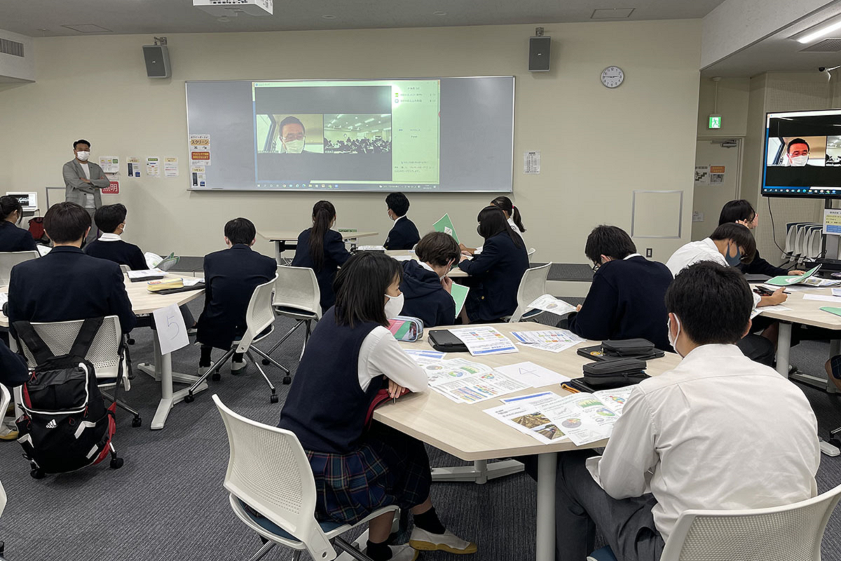 高1男子:「僕がこの半年間で一番印象に残っているのは、地理などの授業で日本や世界各国で起きている問題を話し合ったり、他校の生徒とZoomで話し合ったりする機会が多く、それがすごく刺激的なことです。中学の頃は社会問題について知ってはいても、どこかで大人が議論することだと思っていて。でも今は、世の中で起きている問題についてSNSで発信したりもするのですが、『イイね』を押してくださった方のアカウントを確認してみると、たいてい大人の方なんです。やはり、そこには壁があるというか。子どもはまだ、そういう議論はしなくてもいいという風潮が少なからずあるように感じますが、やっぱりすべての世代がそれぞれの考えを持って、議論する必要があるんじゃないかと。だから、GLEクラスで意見を交わし、それを共有するというのは、すごく重要なことだと思っています」