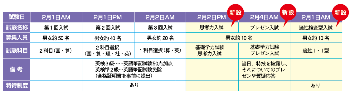 「適性検査型入試」「思考力入試」「プレゼン入試」も新設