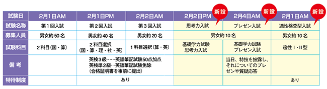 同校のホームページに過去問が載っているので、ご覧になってみてください。また、新設の「適性検査型入試」「思考力入試」「プレゼン入試」は、従来の教科型入試では見出せない力を評価する試験です。