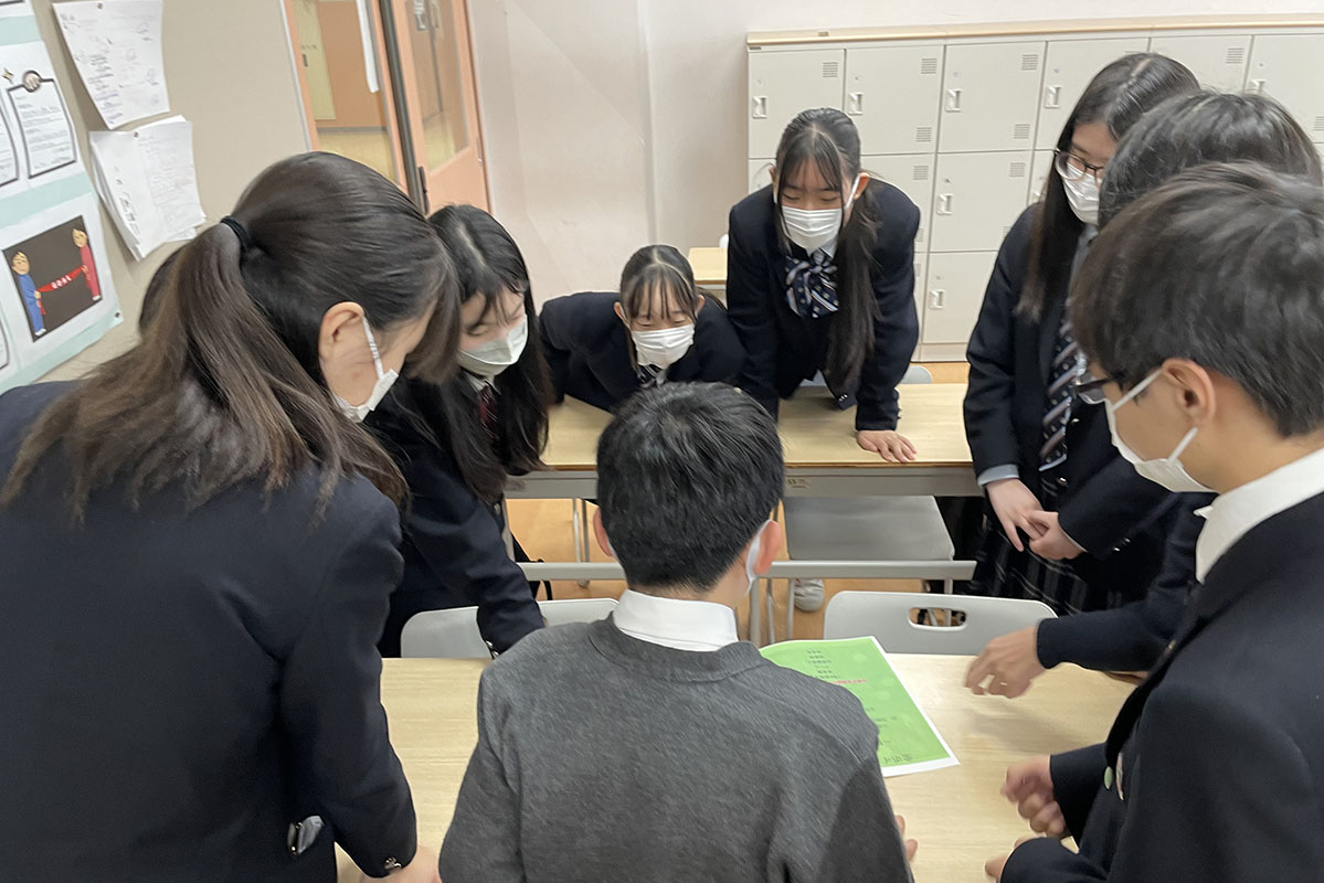 「発表では、動画を効果的に用いたり、聞いている他の生徒たちに問いかけたりしながら、自分たちの考えをわかりやすく伝えます。グループでの発表ですが、必ず全員が話すというルールにしているので、生徒皆が自主的に取り組むことができ、それぞれの表現力やコミュニケ―ション能力を磨けています」(堀先生)