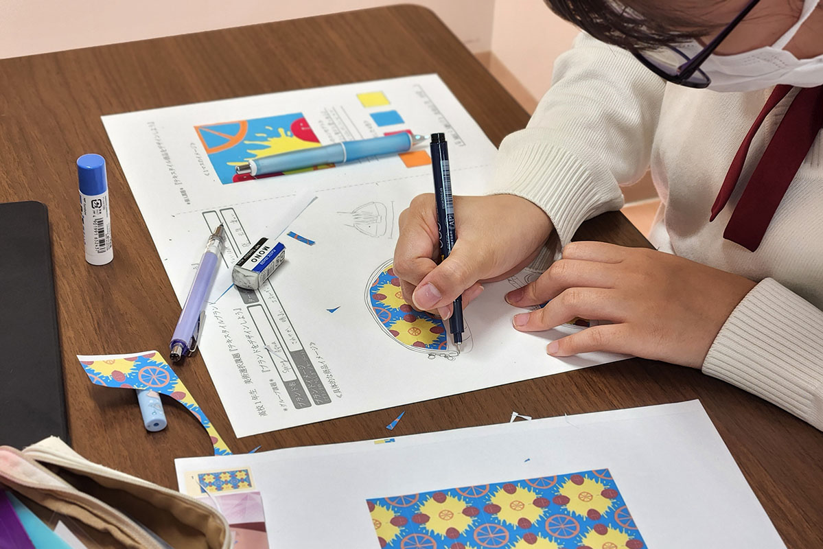 杉原先生:中村橋にある和菓子店「練馬凮月堂」と連携し、和菓子のデザインに取り組んでいます。生徒たちは和菓子職人の方から直接和菓子づくりについて教わったり、和菓子の道具を見せていただいたりするという、これまでにはなかった学びを得ることもできました。今後、生徒たちがデザインした和菓子案について職人の方からフィードバックを頂戴し、最終的には3つほどを実際に商品化していただき、彼女たちの卒業式で祝い菓子として配る予定です。