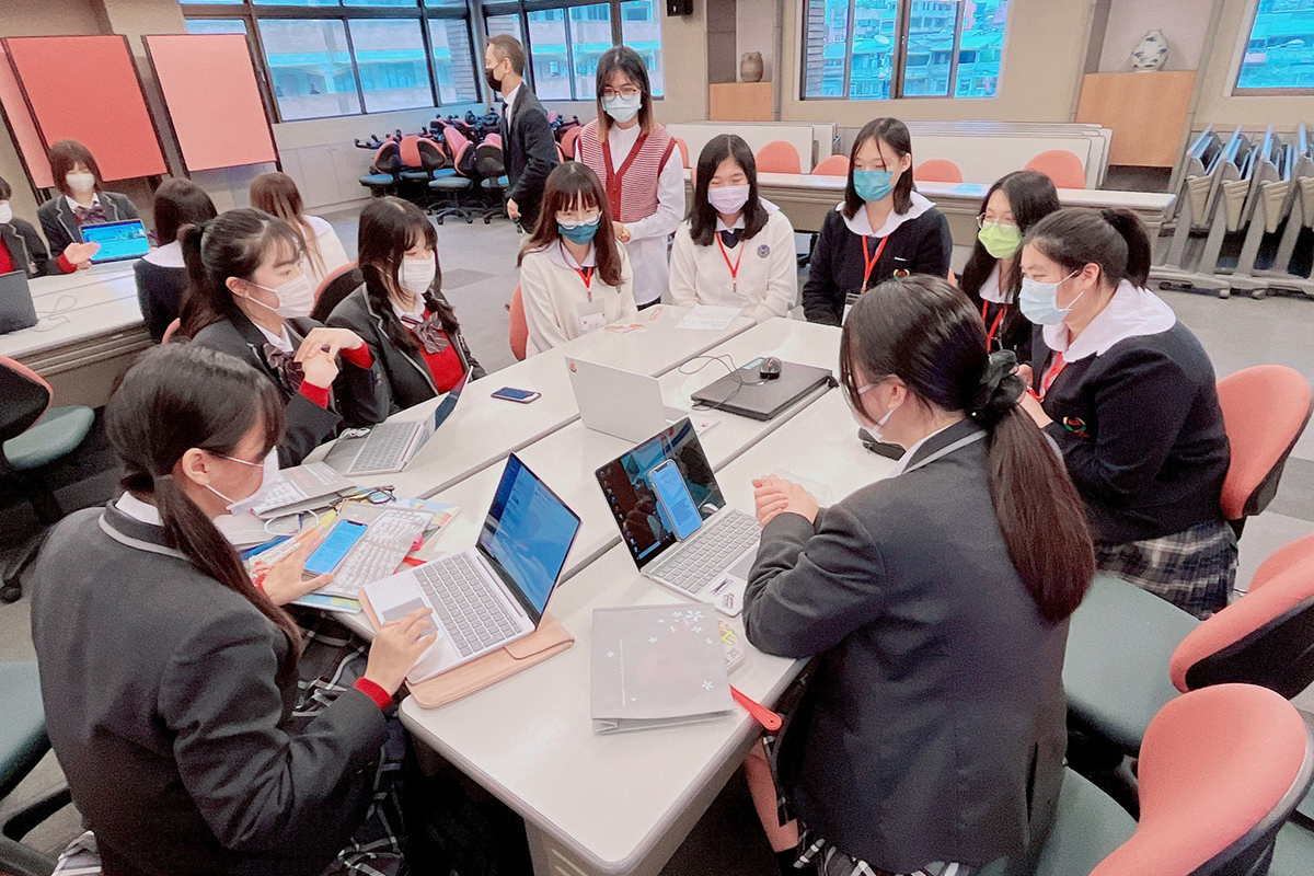 ホームルームクラスは帰国生も一般生も混合なので、多様なバックグラウンドを持つ人々と協働する大切さが実感できる機会となっています。頻繁に行われるグループワークやプレゼンテーションでは、互いに補完しながらチームとして動くことを生徒たちは実践的に身につけていきます。
