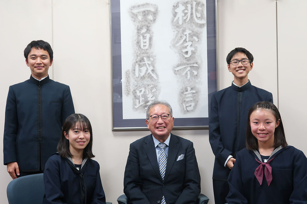 いかに生きるか。そのために何をどう学ぶのかを自らに問う「リベラルアーツ」を推奨する仙田直人校長が、今年も自らインタビュアーとなり、自らの意思で挑戦する堂原衣晴さん(中2)、清水祥寛さん(高2)、名古屋美宥子さん(高2)、降簱大知さん(高1)に、それぞれの気づきや学びについて話を伺いました。